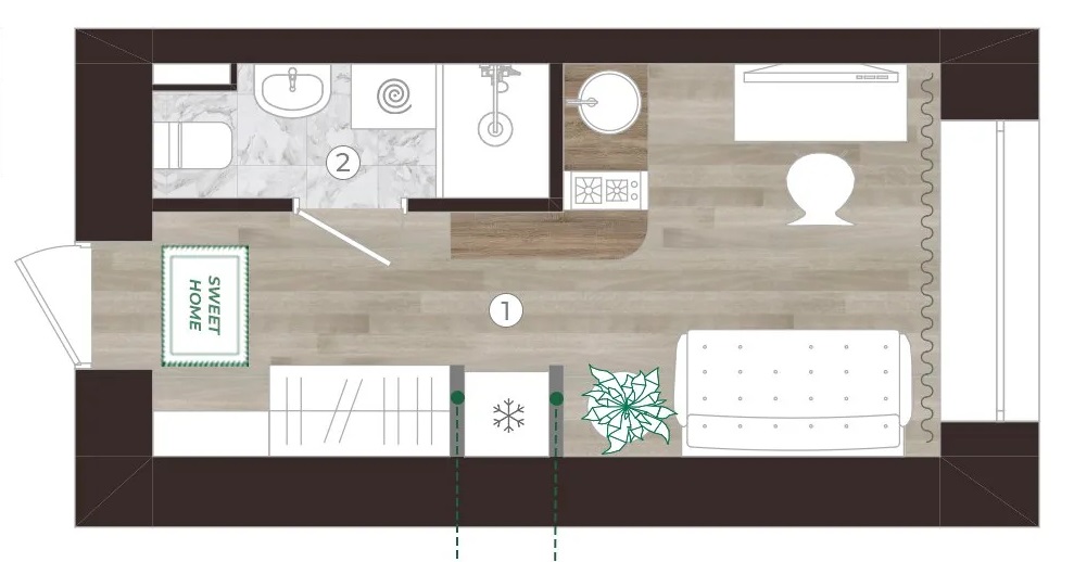 🏠 **Площадь:** 16.5 м². Компактно, функционально, легко содержать в чистоте.